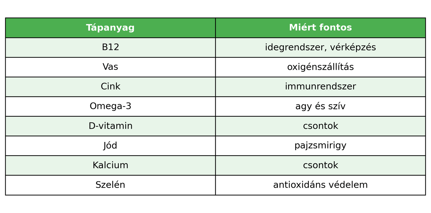 Ugyanakkor a növényi étrend esetében bizonyos tápanyagok pótlására szükséges.