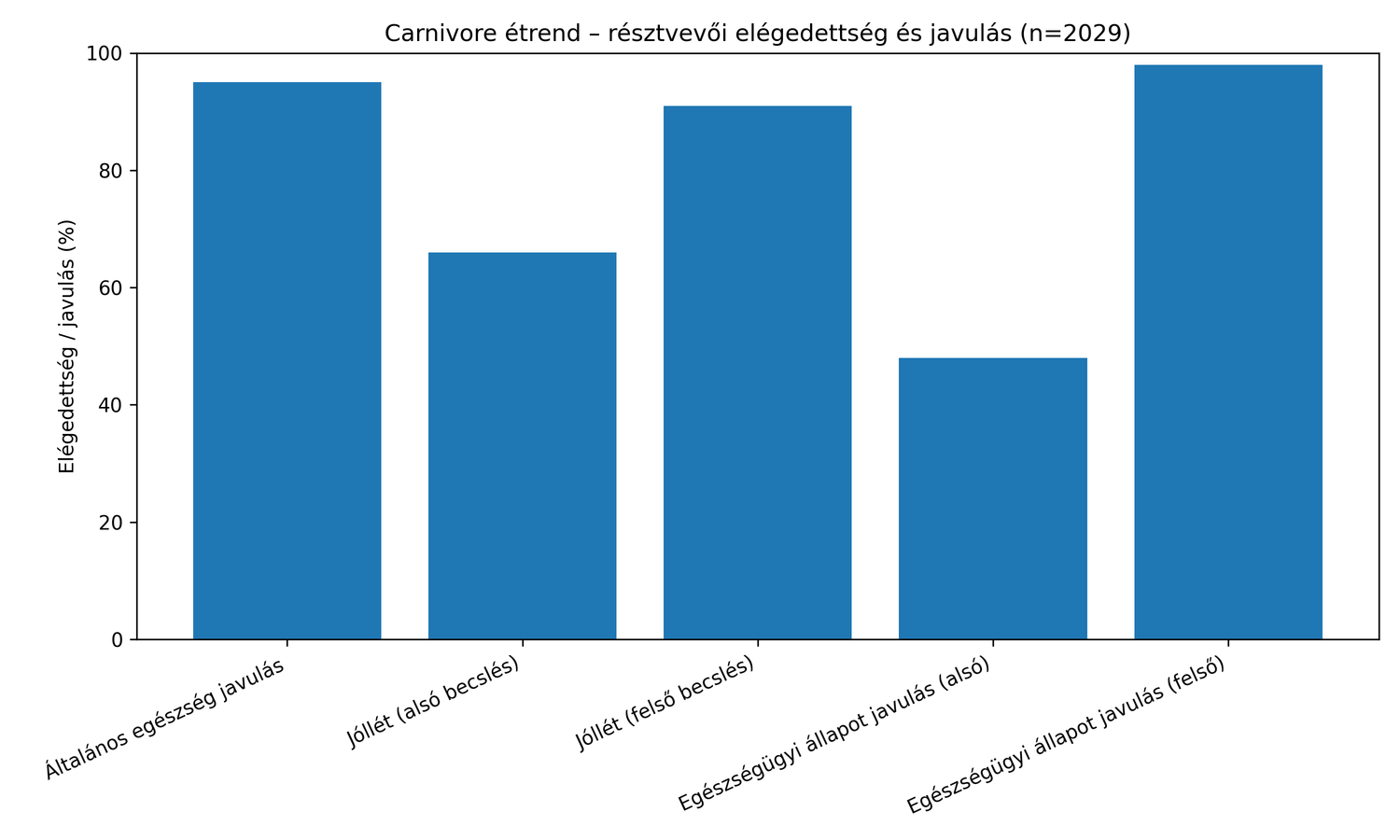 Egy nagy online felmérésben több mint 2000 carnivore étrendet követő ember számolt be jelentős nem is kicsit, hanem nagyon jelentös egészségügyi javulásról, többek között testsúlycsökkenésről, jobb vércukorszintekről és csökkent gyulladásról.
