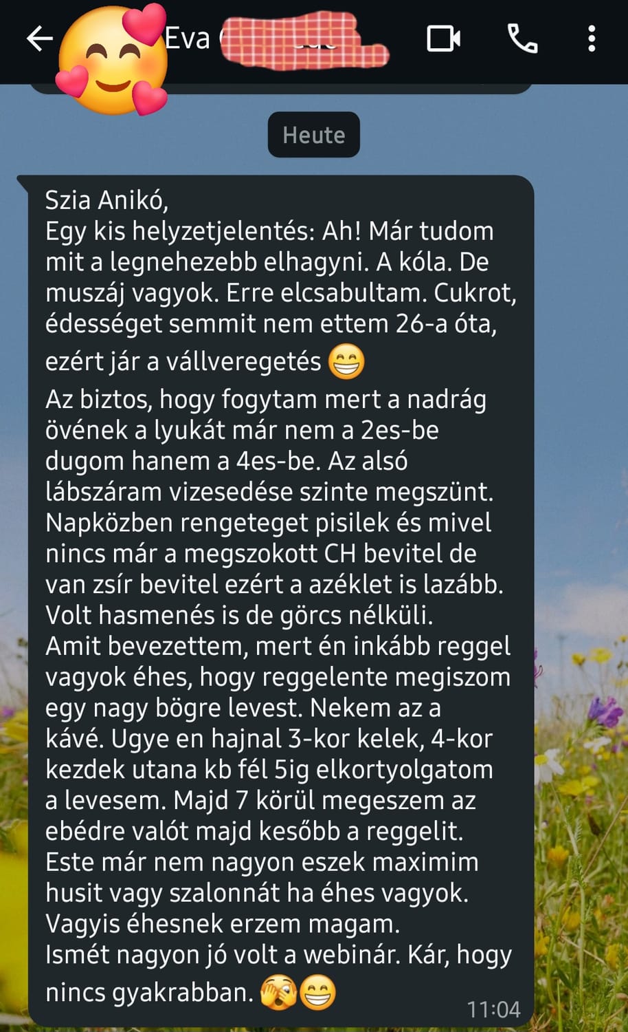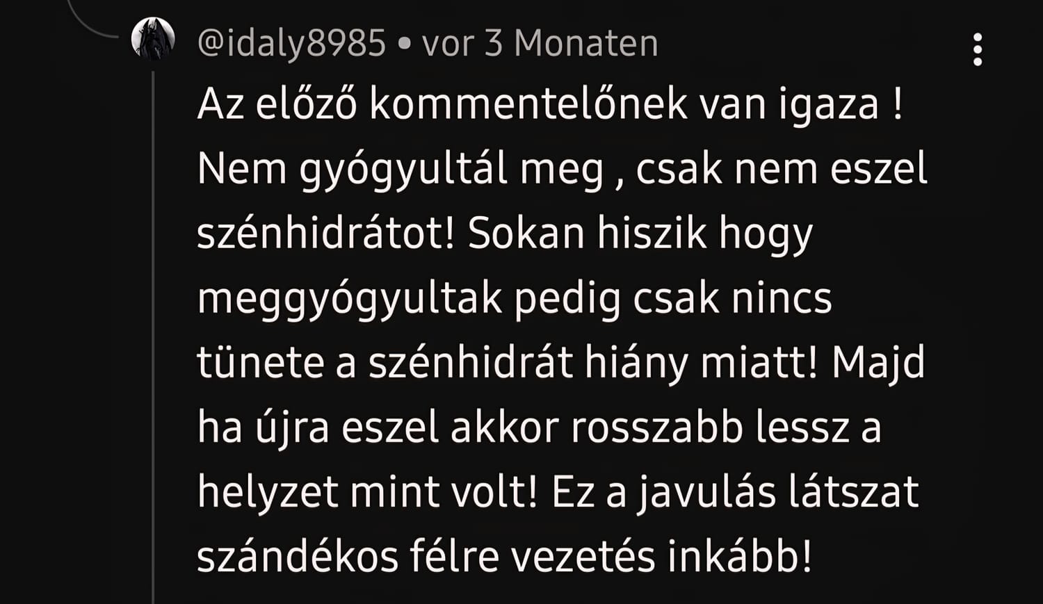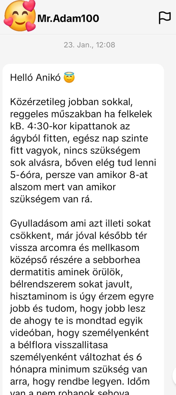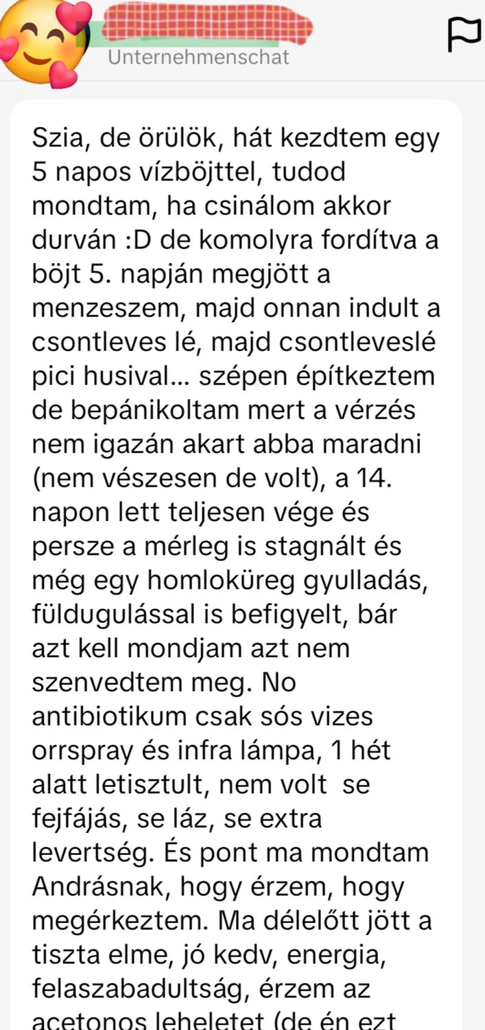 Az ügyfélvisszajelzésekből számomra újra és újra az látszik, hogy a legtöbben nem attól kezdenek jobban lenni, hogy éheznek, hanem attól, hogy végre nem eszik azt, ami rombolja őket......kivétel nélkül!