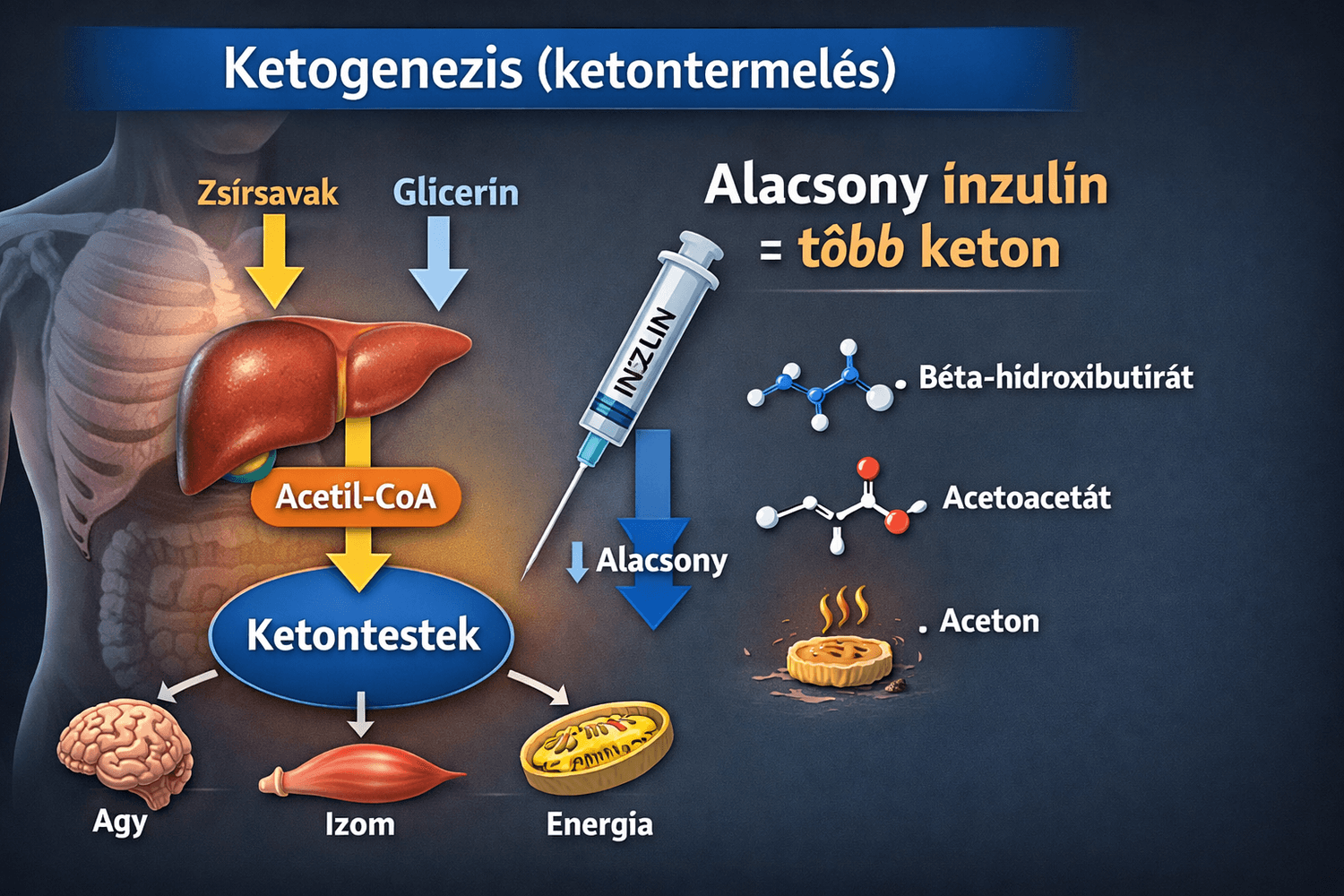 Mondom egyszerűen: amikor az inzulin alacsony, a tested könnyebben engedi ki a zsírt a raktárból, a máj pedig könnyebben gyárt ketont.