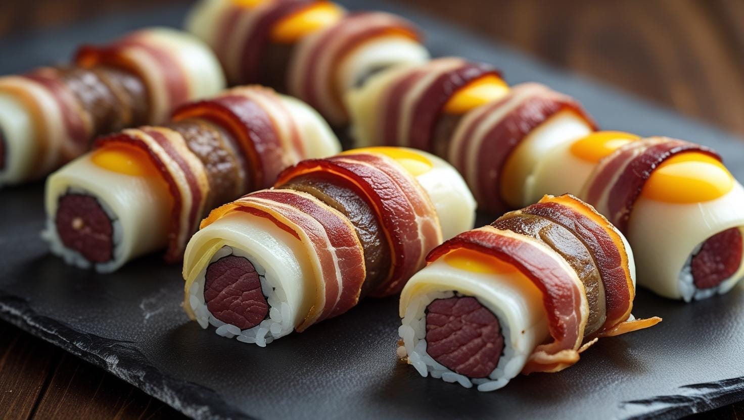 Bacon szeletekbe tekerd a májat, a tojással kicsit ragaszd össze a végét.